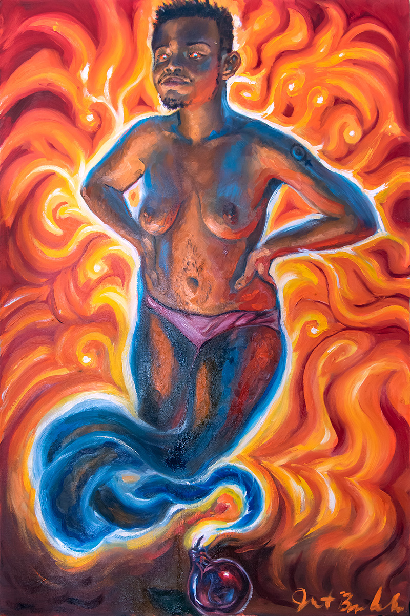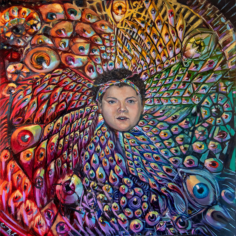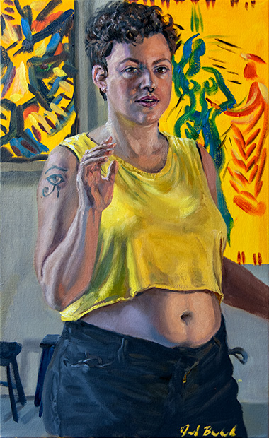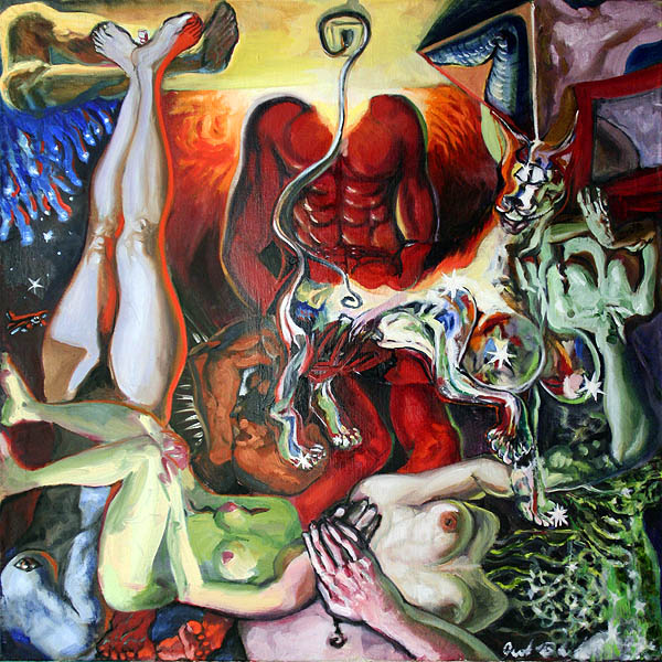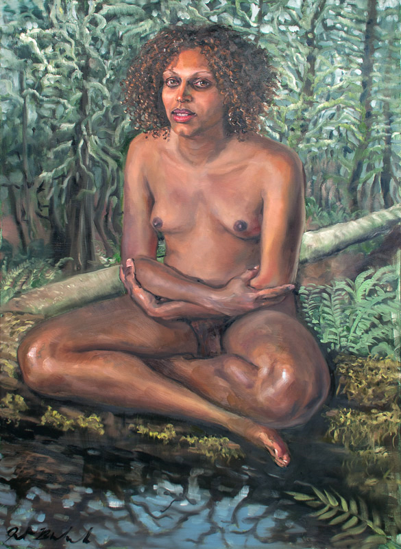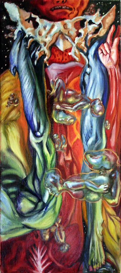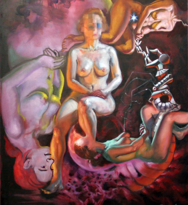 Bruesselbach's work limns speculative realism in the social position of figurative oil painting. Its imaginative experiment seeks cyborg feminism, representing embodied subjects within non-representational, generative spaces. The artist's network of biological mechanism and historical influence manifests as emphatic lucidity and pulp surrealistic excess moderated with pragmatic humor.